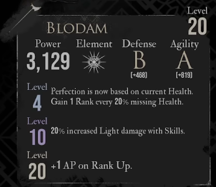 Verso is a hypercarry with this build so Agility first is amazing to boost his speed and weapon scalings. Defense second if staying with Blodam, or swap for your next weapon’s scaling stat if you change and lastly Might third for a flat damage boost.