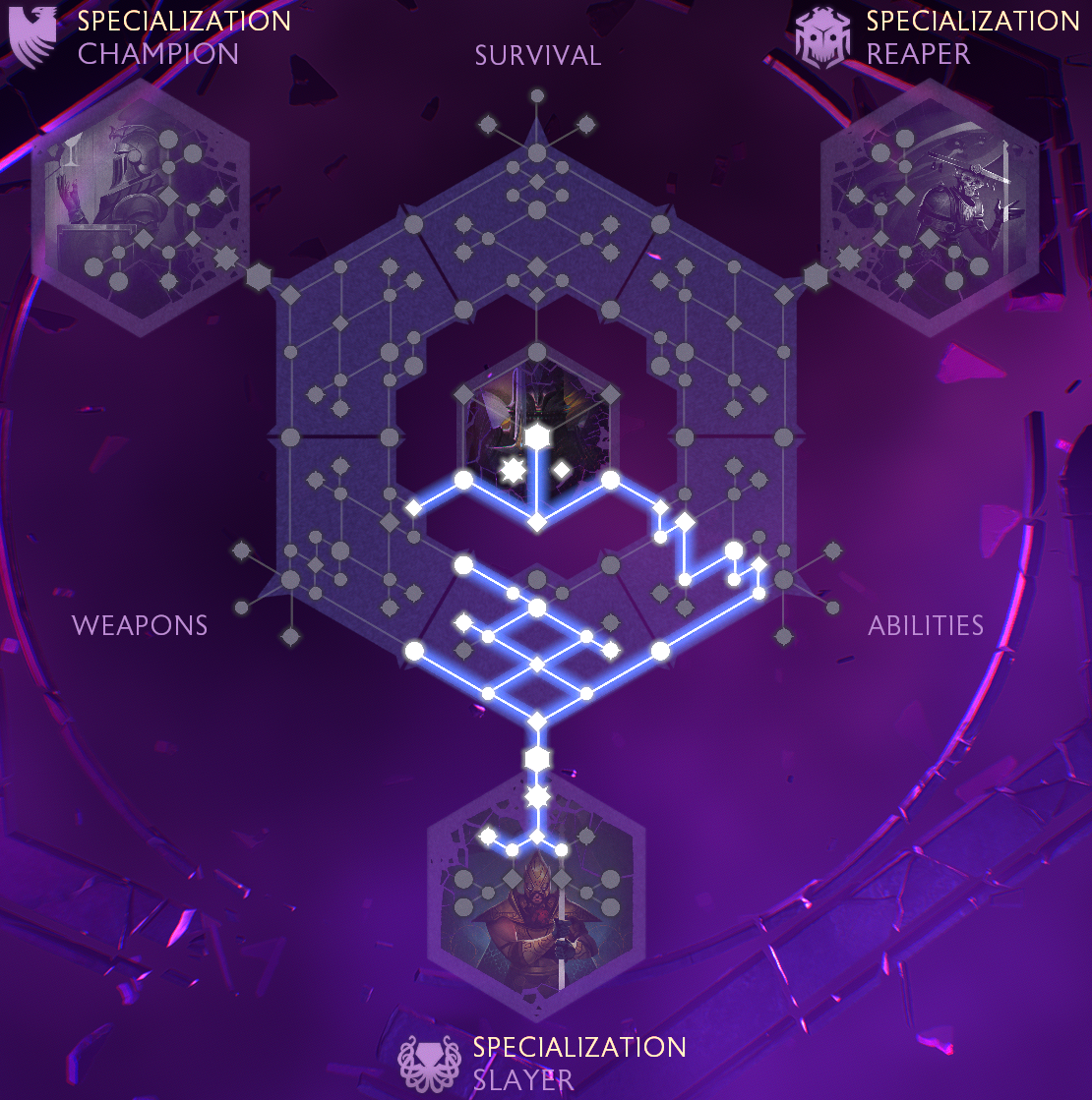 What makes the Slayer so dangerous is how well its toolkit flows together. Titan Stomp and Deadly Duration keep entire groups of enemies locked down, while Whirlwind lets you sweep through clustered packs and finish with crushing damage. Combined with attack-string passives that speed up heavy swings, you’re able to chain stagger after stagger until nothing is left standing. On Nightmare difficulty, this level of crowd control trivializes some of the hardest encounters. It’s not elegant, but it’s brutally effective—and that’s exactly what the Slayer is designed to be.